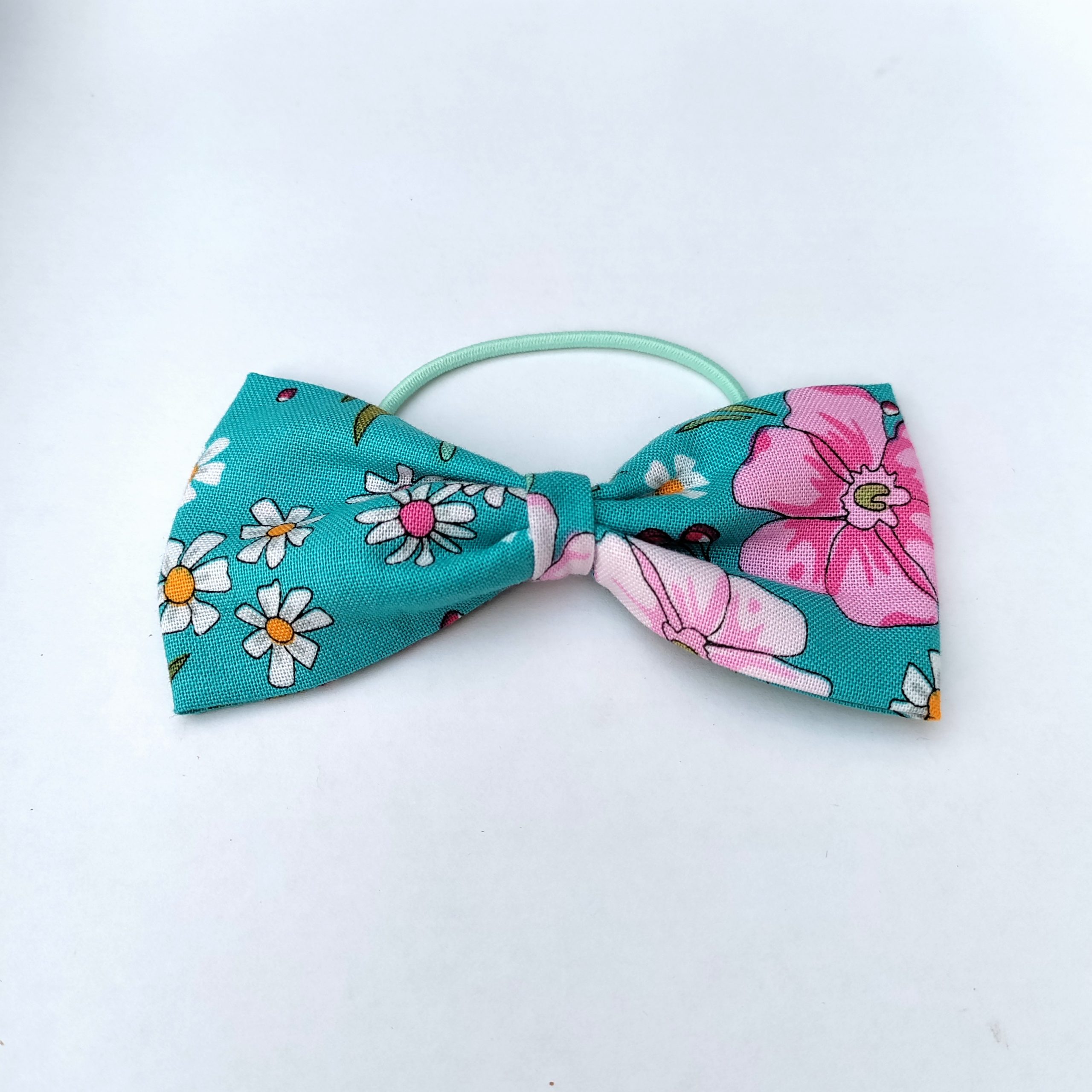 Each bow, measuring approximately 9cm across, is securely attached to an complimenting elastic 5mm in diameter and 2mm thick.